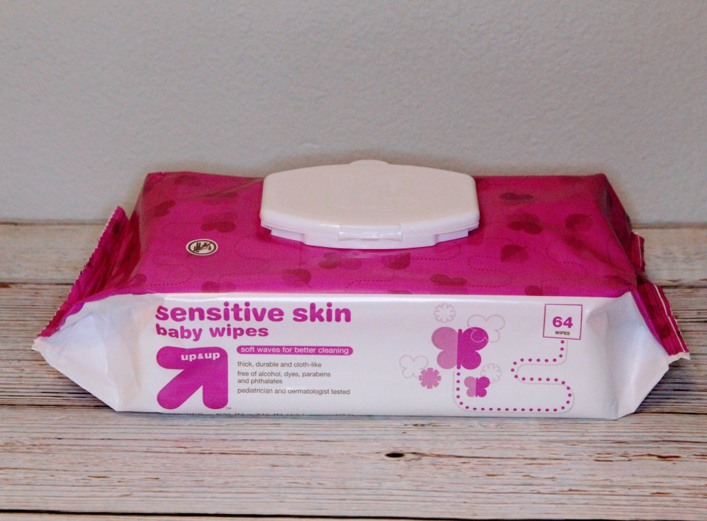After trying both we had a favorite by far. The Up and Up Sensitive Skin Wipes (this distinction is important as these have much better ingredients than both the unscented version, and scented version of Up and Up wipes) are fantastic. Like we loved them. Also can I just mention that it is only $12.39 for 736 wipes. Just for reference one of the most highly talked about natural wipes right now are called Water Wipes, they cost $42.99 for 720 wipes. For me, that’s just not affordable. These may have a few more ingredients than water wipes, but I have been very happy with their quality, price, and the ingredients they chose not to include.