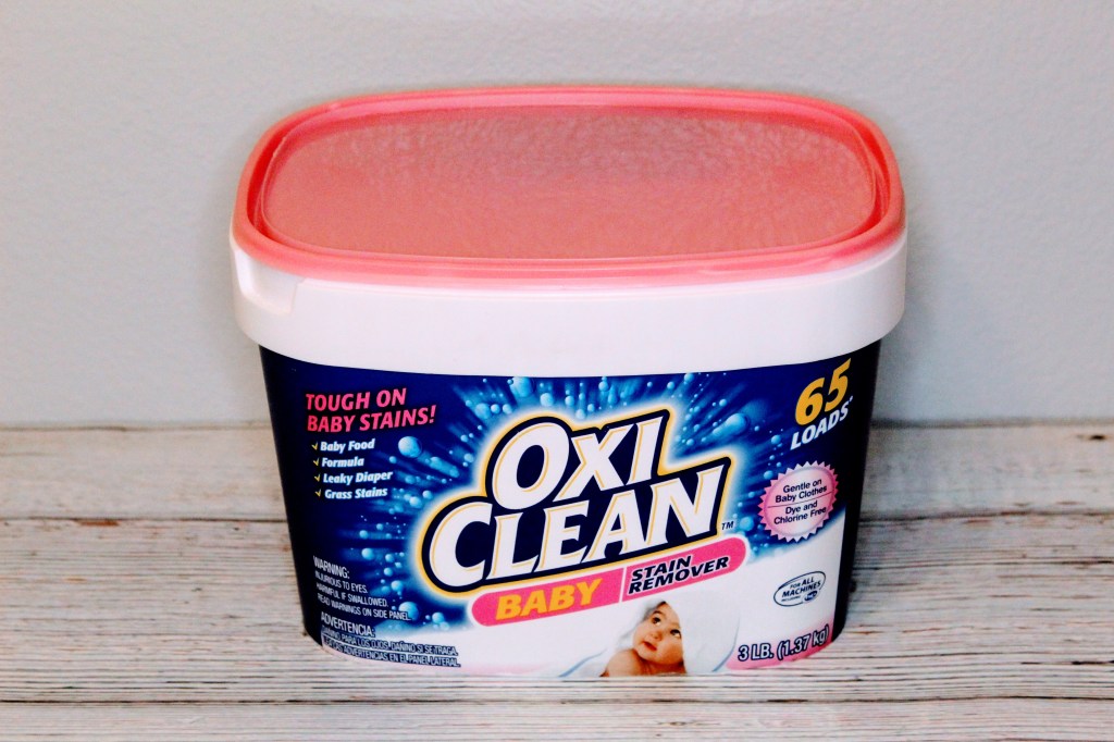 UPDATE 6/13/20: Okay, so we have been using this for months now mainly for soaking stained clothes. We did finally invest in that full body bib for the babe which has SAVED us, if you have a baby or toddler please just buy one right now. You will thank me later. Also we are purely trying to finish off our OxiClean Baby because Tanner seems to be allergic to it or something. Anytime I use it on anything he touches his eyes start to hurt, so it is not working out for us and we will be looking elsewhere for a stain remover or brightener. It took us a long time to realize what was causing his irritation since I switched out so many products in our house at the same time. Just as a word of caution I would suggest being a bit more careful than we were and intentionally switching one thing at a time so you can make sure you don’t have bad reactions. 🙂